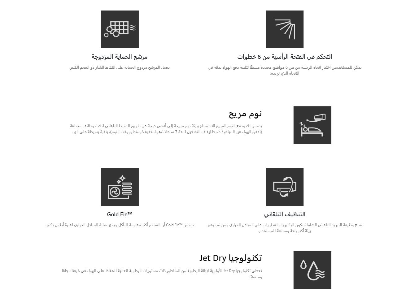 يعمل التأرجح التلقائي في أربع اتجاهات على ضبط تدفق الهواء بناءً على البيئة المحيطة، مما يسمح بتوزيع الهواء الدافئ في مناطق المعيشة والتمكين من التدفئة السريعة