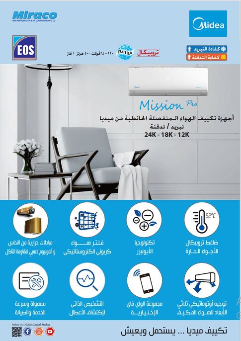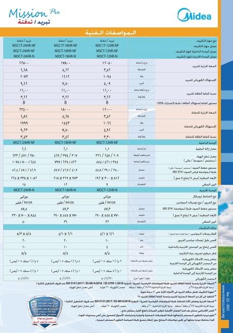 كافة المواصفات الفنية الموضحة والخاصة بالمنتج تم التاكيد عليها من خلال المواصفة الفنية والكتالوجات المصدره من المصنع المنتج للجهاز دون ادنى مسئولية على اير جروب للتكييف والتجارة