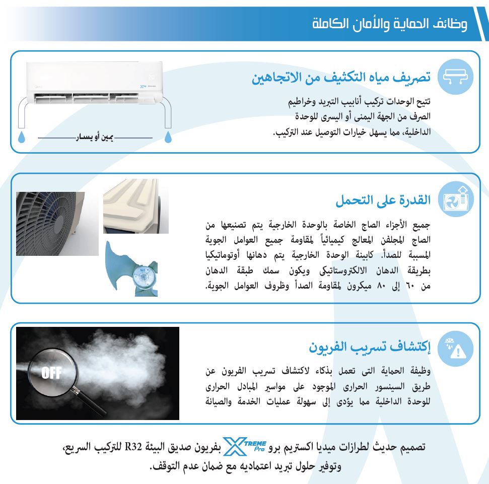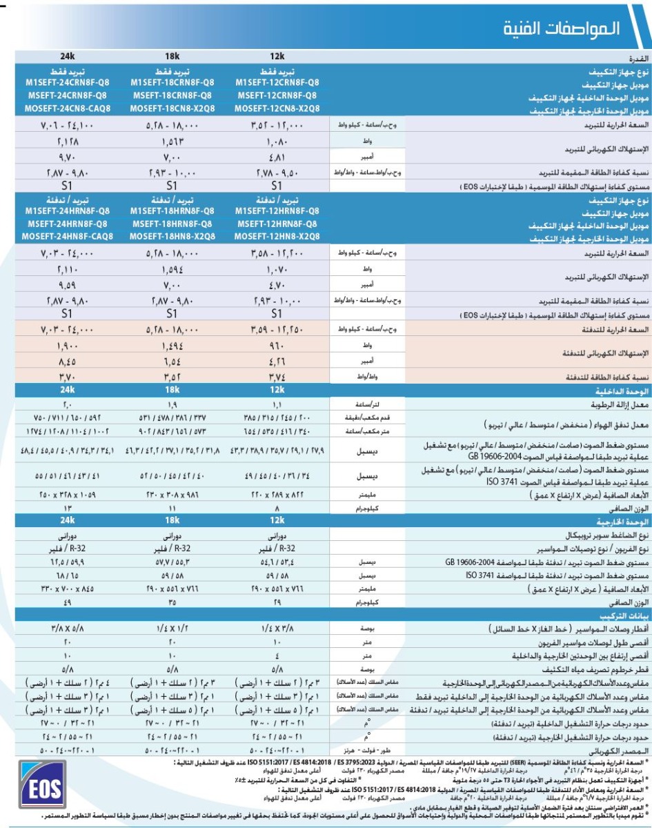 كافة المواصفات الفنية الموضحة والخاصة بالمنتج تم التاكيد عليها من خلال المواصفة الفنية والكتالوجات المصدره من المصنع المنتج للجهاز دون ادنى مسئولية على اير جروب للتكييف والتجارة