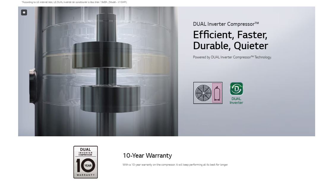 LG air conditioner begins cooling the air fast using its high speed cooling range with Dual Inverter Compressor™, so it expels air farther and cool spaces faster