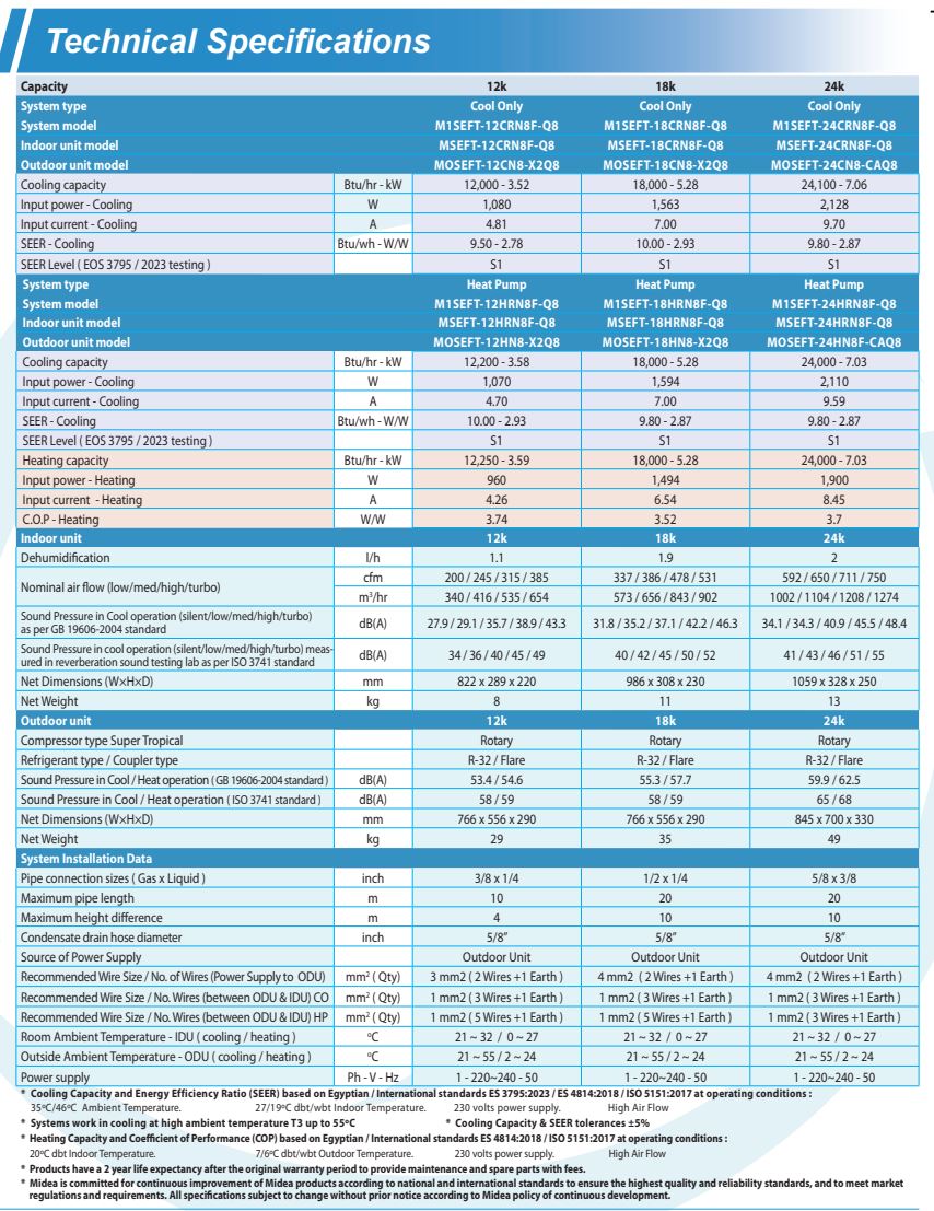 All the technical specifications shown for the product have been confirmed through the technical specifications and catalogs exported from the manufacturer producing the device, without any liability to Air Group for air conditioning and trade